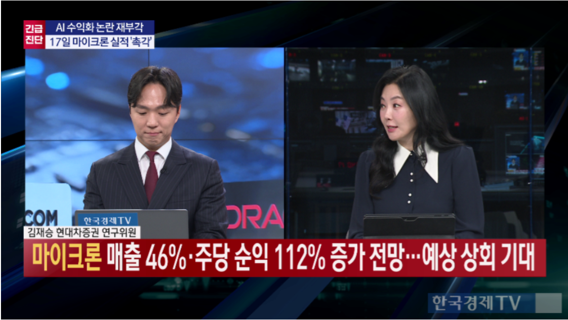 김 연구위원은 "마이크론 테크놀로지의 실적은 상당히 잘 나올 것으로 예상하고 있어 별다른 우려는 없다"고 평가했다.