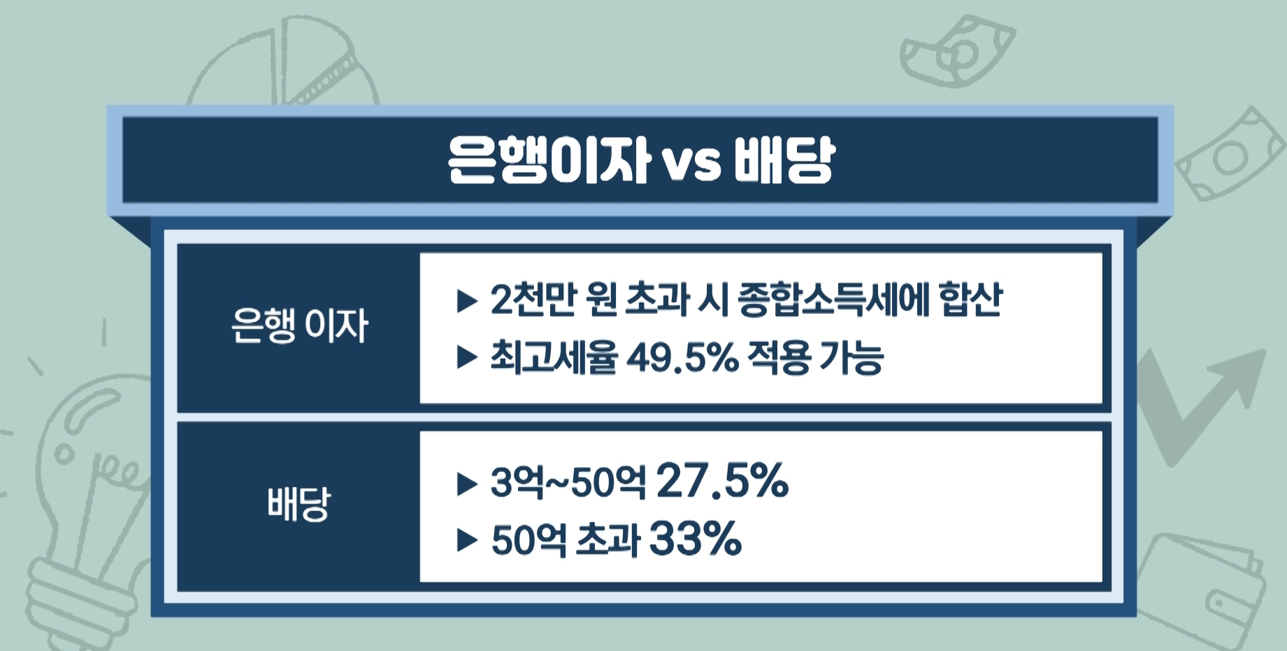 정부는 국내 증시를 부양하기 위해 2024년 초부터 ‘배당선진화 제도’와 다양한 주주환원 정책을 단계적으로 추진해 왔습니다. 이 흐름은 최근 배당소득 분리과세 도입으로 이어졌습니다. 여야 합의 기준을 보면 배당소득 분리과세는 지방세를 포함해 3억 원 초과 50억 원 이하 구간에 27.5%, 50억 원 초과분에 33% 세율을 적용하기로 했습니다. 배당소득이 50억 원을 넘어가려면 배당주에 수백억~수천억 원을 투자해야 하는 만큼, 현실적으로는 3억~50억 원 구간을 최대 실질 세율 구간으로 봐도 무리가 없다는 해석이 나옵니다.