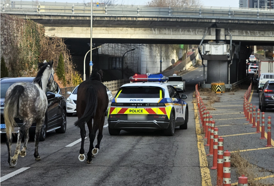 말 주인의 신고를 받고 출동한 경찰은 25분 뒤인 오후 3시 10분께 도로에서 말들을 발견, 순찰차로 진로를 막아 말들을 도로 위에 세운 뒤 주인에게 인계했다.