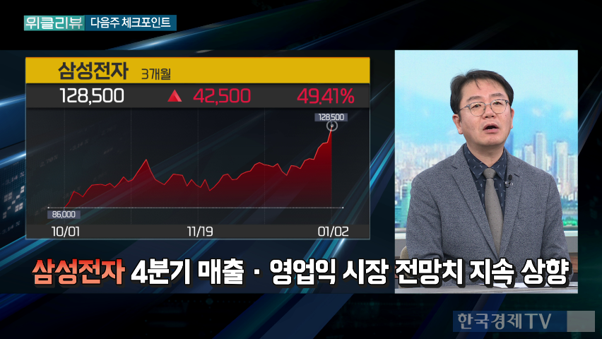● "1월 증시 상승 전망...한중 정상회담·CES·삼전 실적 주목" [다음주 전략] 새해 첫 거래일이자 주간 마지막 거래였던 금요일 장에서 코스피는 4310포인트까지 상승하며 긍정적인 출발을 알렸다. 2025년에 이어 2026년에도 삼성전자와 SK하이닉스가 시장을 주도하며, 반도체 중심의 랠리가 지속될 전망이다. 특히 CES와 삼성전자의 실적 발표가 향후 시장에 큰 영향을 미칠 주요 이벤트로 주목받고 있다.