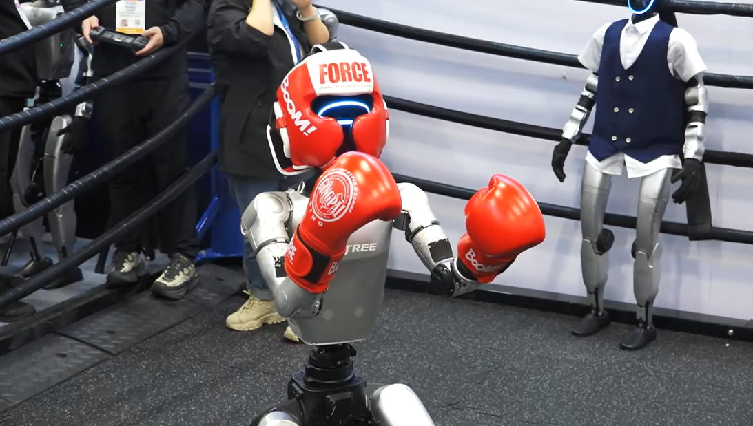유니트리는 격투기 로봇을, 부스터로보틱스는 마이클 잭슨의 노래에 맞춰 춤추는 로봇을 선보였습니다.