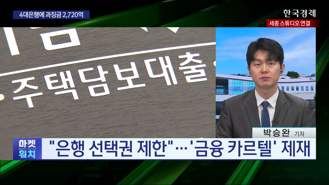 공정거래위원회는 국민·신한·우리·하나은행이 부동산 담보인정비율, LTV 정보를 공유해 시장 경쟁을 방해한 혐의로 과징금 2,720억원을 부과했습니다.