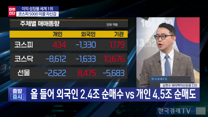 ● 핵심 포인트 - 오늘 시장은 관세 이슈에도 불구하고 대부분 종목이 아래꼬리를 형성하며 회복세를 보이고 있으며, 특히 현대차는 1%대의 강세로 양봉 전환 후 상승세를 지속함. - 코스피는 5000포인트, 코스닥은 1000포인트를 돌파했으며, 이는 기관 및 기타 법인의 지속적인 매수세에 힘입은 결과임. - 소시에테제네랄 보고서에 따르면 2025년 코스피 시장에서 기관과 기타 법인이 총 31조 원을 매수했으나, 이는 시장 이해 부족으로 판단됨. - 전문가들은 코스피 시장을 세 국면으로 나누어 분석해야 한다고 주장하며, 각 국면에서의 외국인, 기관, 개인 수급 변화를 관찰하는 것이 중요하다고 강조함. - 기타 법인은 일반 법인의 자사주 및 타법인 지분 매수를 의미하며, 작년에는 11조 원, 올해 1월에는 이미 2.7조 원 규모의 순매수를 기록함. - 국내 주식시장에서 자사주 매입 및 소각이 증가하고 있어 주주 환원 정책이 강화되고 있음을 시사함. - 한국 증시는 제도적 개선을 통한 주주 가치 제고와 함께 기업 이익 증가로 인해 긍정적인 흐름을 유지하고 있음. - 미국과 중국의 경제 성장 전망이 상향 조정되었으며, 특히 미국의 경우 강력한 완화적 정책 덕분에 경기 확장 가능성이 큼. - AI 버블 논란에도 불구하고 현재 AI 랠리는 실적 기반의 성장을 보이고 있으며, 과거의 닷컴버블과는 달리 안정적인 주가 이익 배수를 유지하고 있음.