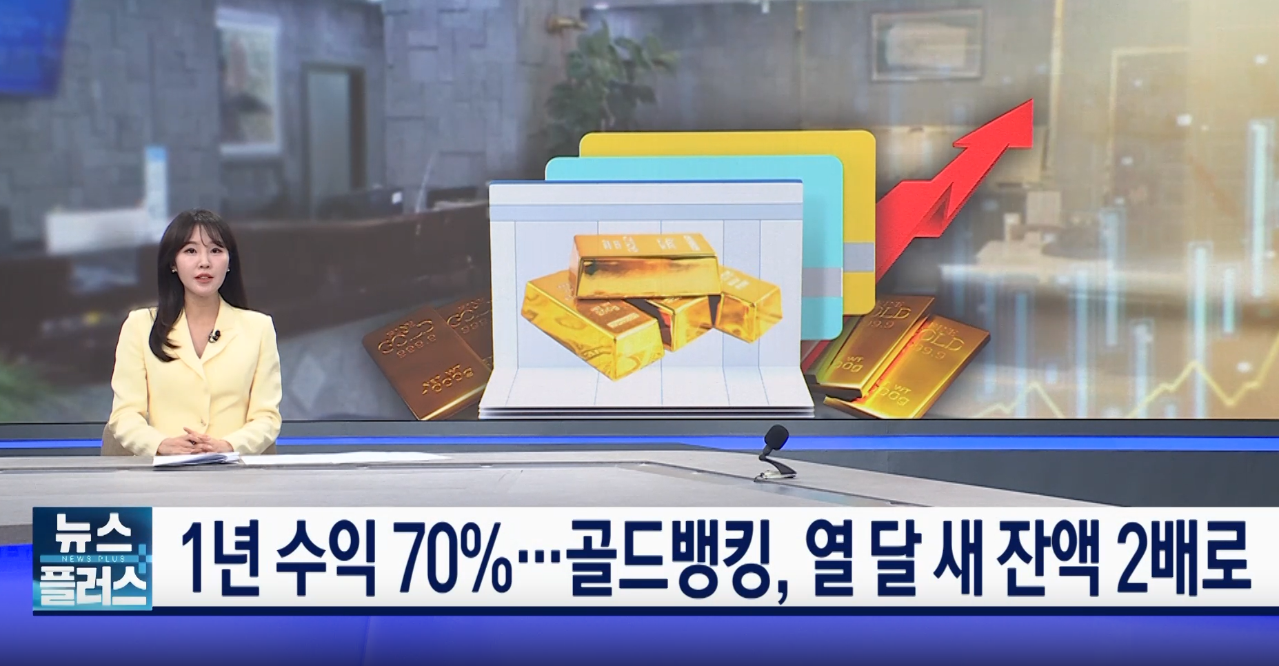 '골드 뱅킹'의 1년 수익률이 70%를 넘어서고, 잔액은 2조 원을 돌파하는 등 금투자 열풍이 뜨겁습니다.