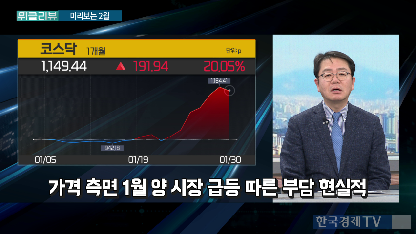 ● "2월 증시 상승 전망..美 연준 의장·이사 주목" [다음주 전략] 코스피는 지난 1월 동안 총 22% 상승했으며, 코스닥 또한 20% 이상의 월간 상승률을 기록했습니다. 이러한 성과는 반도체 중심의 기업 실적 호전과 국내 유동성 유입이 주요 배경으로 분석됩니다. 고객 예탁금은 103조 원으로 급증하였고, 금융투자의 순매수도 큰 역할을 했으나 이는 주로 개인의 ETF 매수로 인한 것입니다.