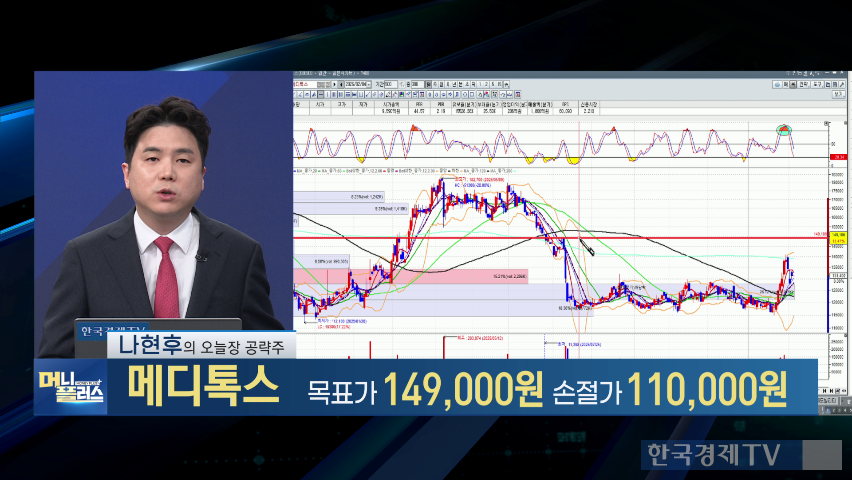 나현후 전문가는 메디톡스를 추천하며, 톡신과 히알루론산 필러로 유명한 기업이라고 소개했습니다. 메디톡스는 중동과 중남미를 포함한 해외 시장 진출을 확대 중이며, 미국 FDA 품목 허가 재신청 움직임도 있다고 설명했습니다. 기술적 분석상 상승 이후 눌림목 구간이지만 추세 이탈이 아닌 과열 식히기로 판단되며, 목표가는 14만 9천 원, 손절가는 11만 원을 제시했습니다.