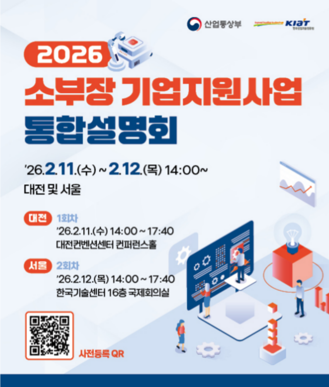 한편 KIAT는 11일 대전, 12일 서울에서 3개 사업 통합설명회를 개최한다. 사전등록 후 참가한 기업은 현장에서 일대일 상담도 받을 수 있다. 행사 사전등록은 KIAT 홈페이지에서 할 수 있다.