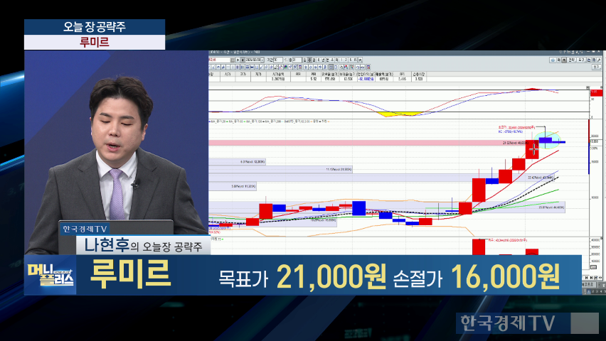 ● 루미르 · 아이티센글로벌 [20일 공략주] 나현후 파트너는 우주항공 및 지구 관측 위성 제작 업체인 '루미르'를 소개하며, 우주항공청 예산 확대로 인한 수혜 가능성을 언급했습니다. 루미르는 최근 음봉 5개로 인해 눌림 구간에 있으며, 주봉에서 양봉 전환 가능성이 있어 1차 목표가를 2만 1천 원, 손절가를 1만 6천 원으로 제시했습니다.