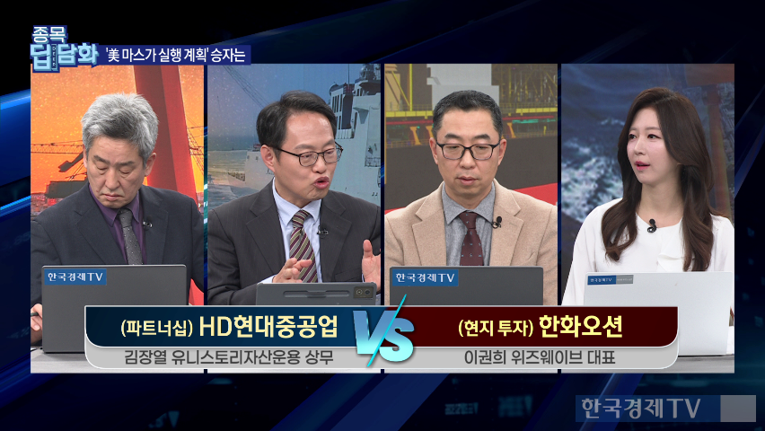 ● "조선주 톱픽은...HD현대중공업 vs 한화오션" [종목 딥담화2] 전문가들은 미국 정부의 해양 관련 실행 계획(MASGA 프로젝트) 발표가 조선업계에 긍정적인 영향을 미칠 것이라고 분석했다. 김장열 상무는 HD현대중공업을, 이권희 대표는 한화오션을 추천하며, 두 종목 모두 미국 시장에서의 협력 가능성을 높게 평가했다. 전문가들은 조선주가 오랜 기간 조정을 겪었지만, 이번 뉴스로 인해 반등할 가능성이 크다고 판단했다.