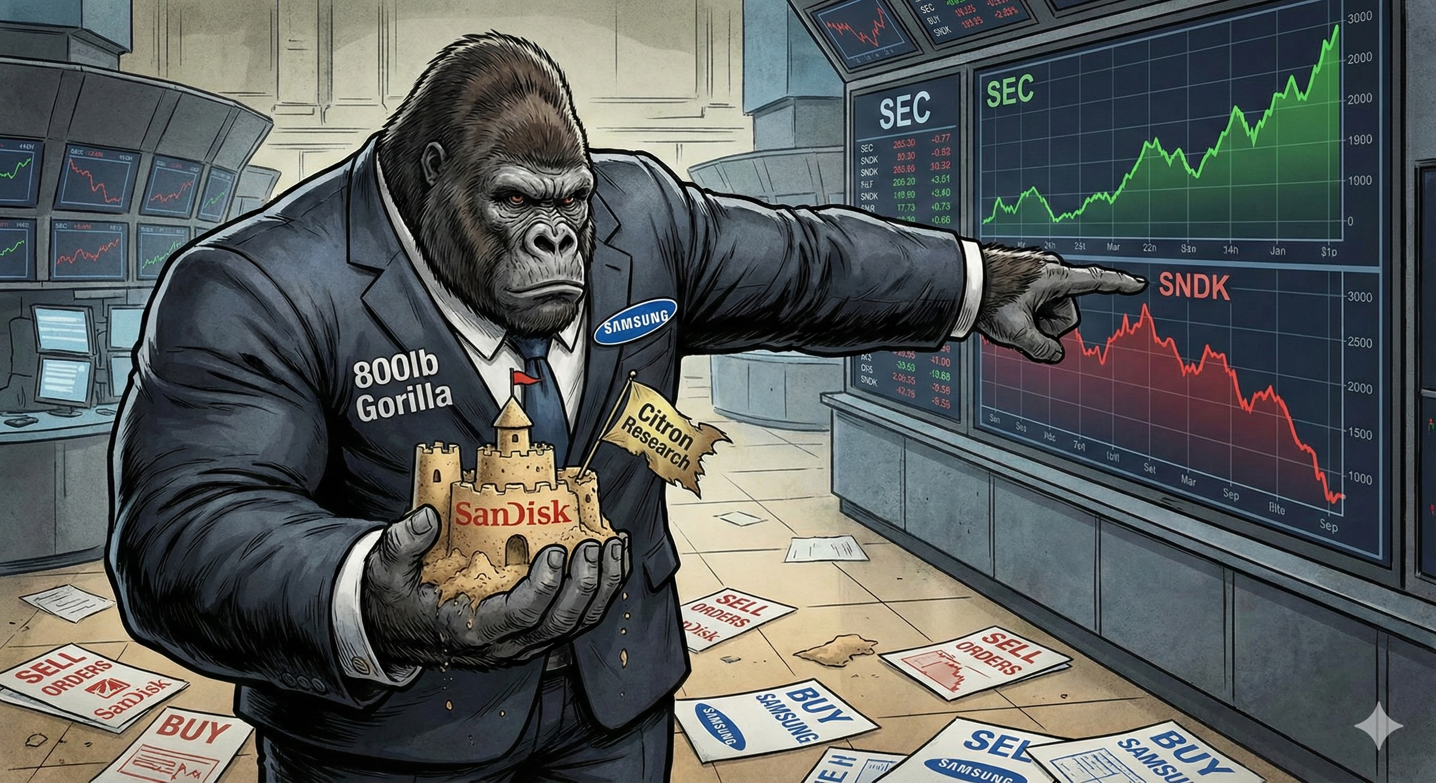 시트론은 샌디스크를 '해자 없는 범용 상품 판매자'라고 깎아내리면서 샌디스크를 위협하는 '800파운드 고릴라'로 삼성전자를 지목했습니다. 시트론의 경고는 샌디스크에게는 치명적이지만, 삼성에게는 역설적인 찬사로 볼 수 있습니다.