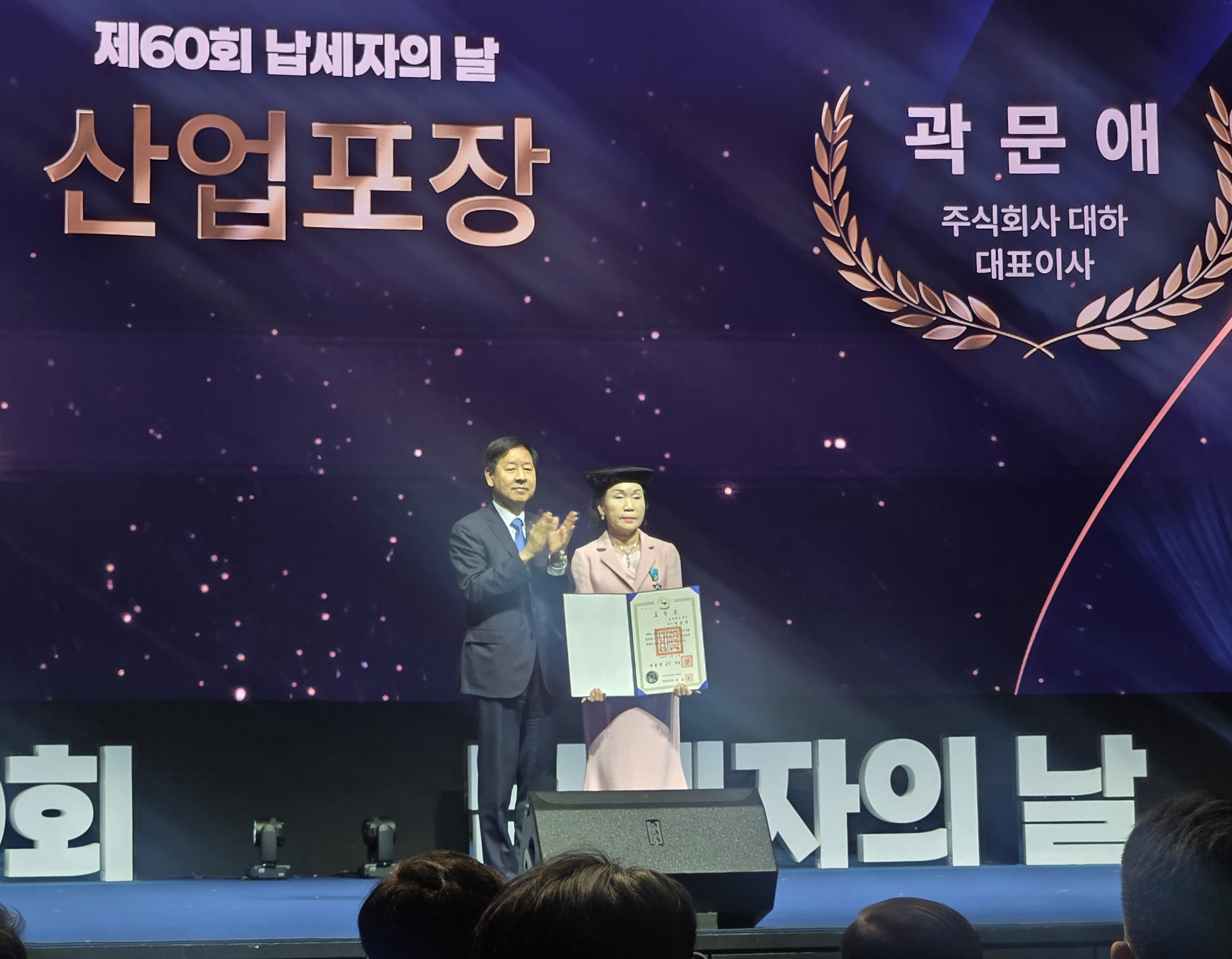 ㈜대하 곽문애 대표이사가 서울시 삼성동 코액스 오디토리움에서 열린 ‘제 60회 납세자의 날’ 기념식에서 ’산업포장‘을 수상하였다.