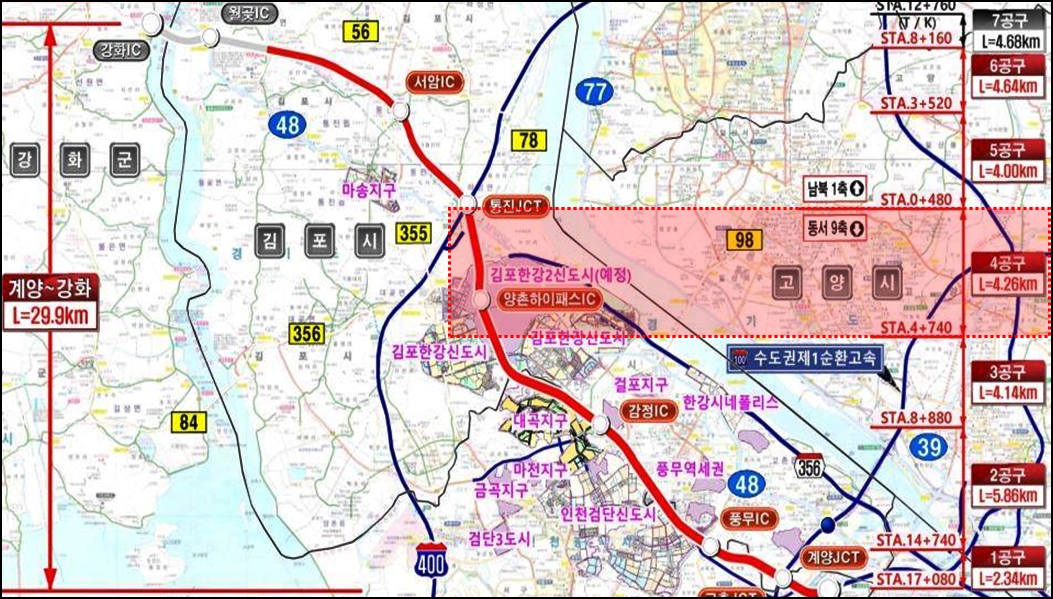 특히 김포한강신도시와 검단신도시, 인천계양테크노밸리 등 수도권 서북부 주요 개발 거점을 연결하는 인프라로, 신도시 교통 수요 분산과 광역 접근성 개선에 기여할 것으로 회사 측은 기대했다. 현재 1시간 이상 소요되는 강화~계양 간 이동시간이 20분대로 단축될 것으로 예상된다.