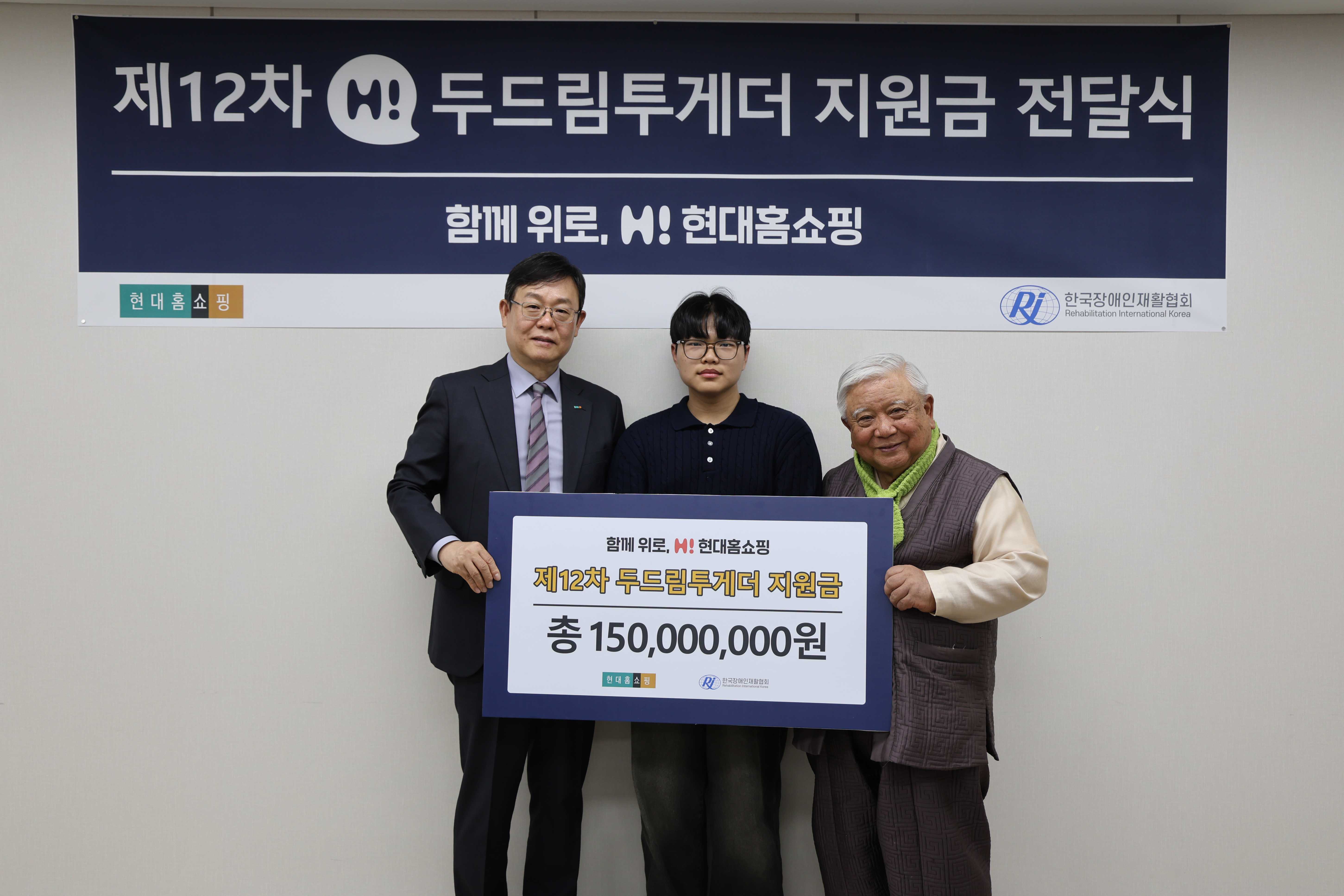 한국장애인재활협회(회장 나운환, 이하 재활협회)와 현대홈쇼핑이 30일 현대홈쇼핑 사옥에서 장애가정 청소년 장학 프로그램 ‘하이(H!)두드림투게더(이하 두드림투게더)’ 기금전달식을 진행했다고 밝혔다.