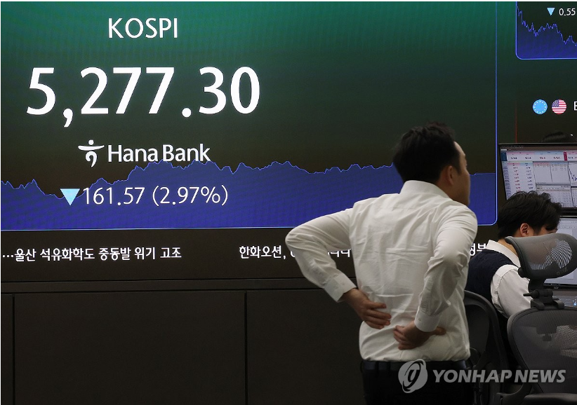 지난 3일 유가증권시장 시가총액은 전날 대비 376조9천396억원이 빠져나갔다. 4일엔 주가가 12.06% 폭락하면서 역대 최대 규모인 574조4천866억원이 사라졌다.