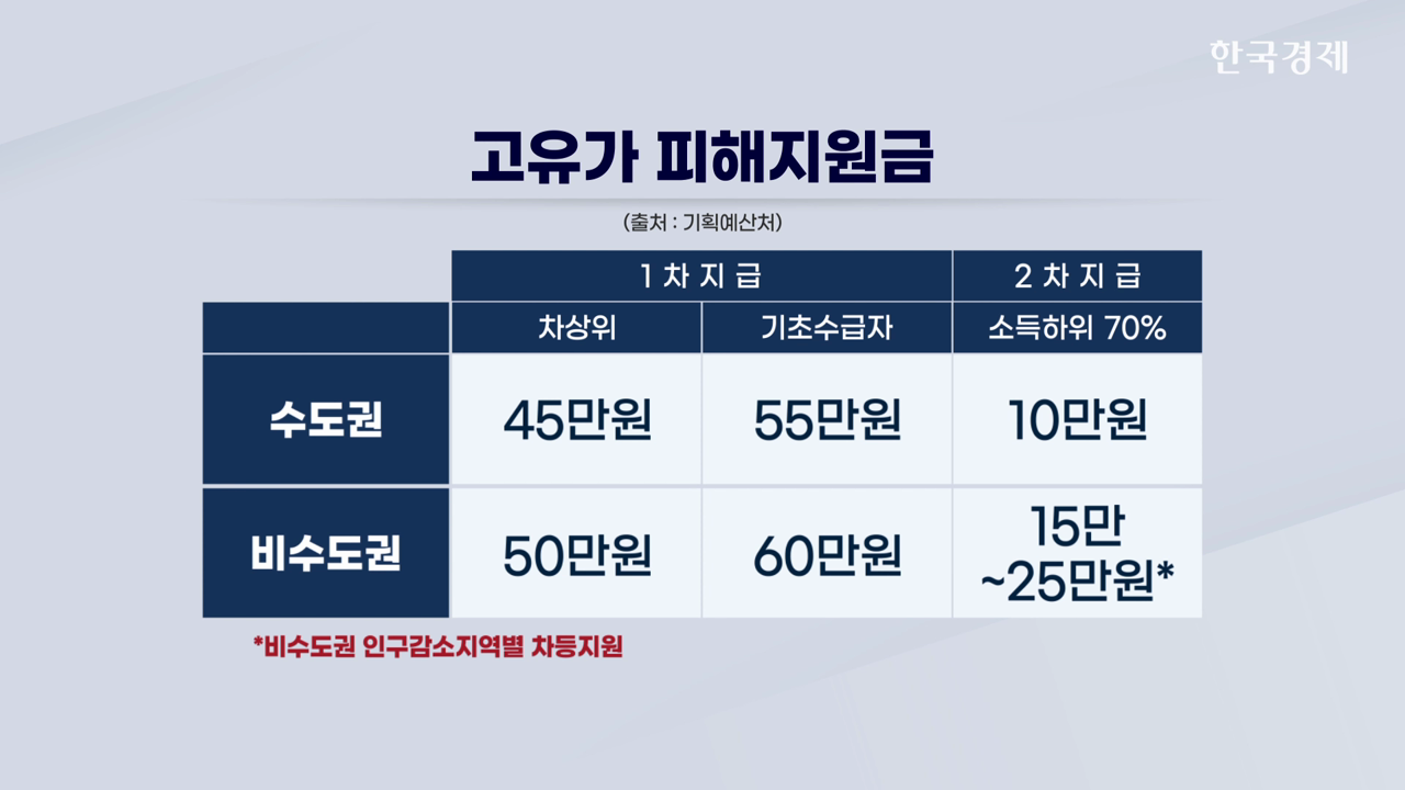 지급 금액은 지역에 따라 차등 적용되며, 정부는 건보료 등을 통해 대상을 확정한 후 신속히 지급한다는 방침입니다.
