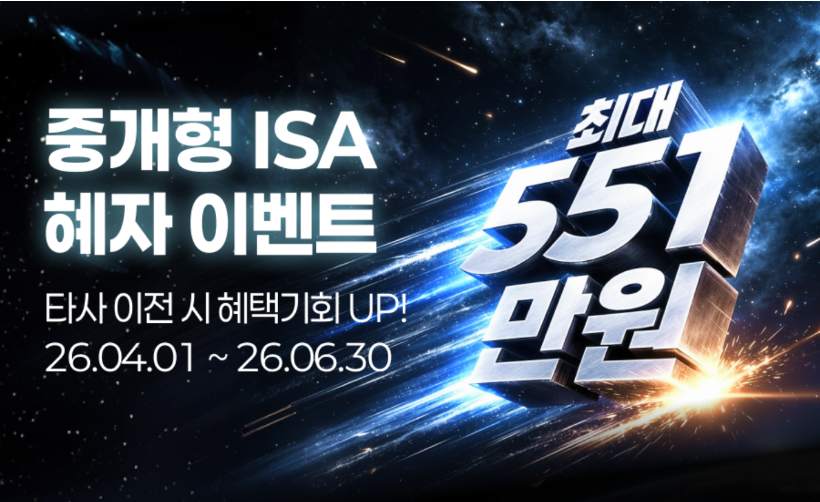 이번 이벤트는 더 많은 고객이 ISA 절세 혜택을 누릴 수 있도록 기획됐다. 이벤트는 신규·이전 고객 대상 현금 최대 51만 원 지급(전원 및 추첨), 순입금 및 1주 이상 거래 시 현금 최대 500만 원 지급(조건 충족 시), 500만 원 이상 순매수 고객 대상 상장지수펀드(ETF) 1주 지급(추첨) 등 세 가지로 구성됐다.