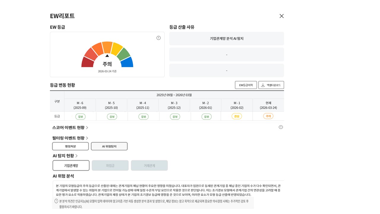 자세한 내용은 KODATA의 기업정보 종합 플랫폼 크레탑의 '조기경보' 메뉴에서 확인할 수 있다.