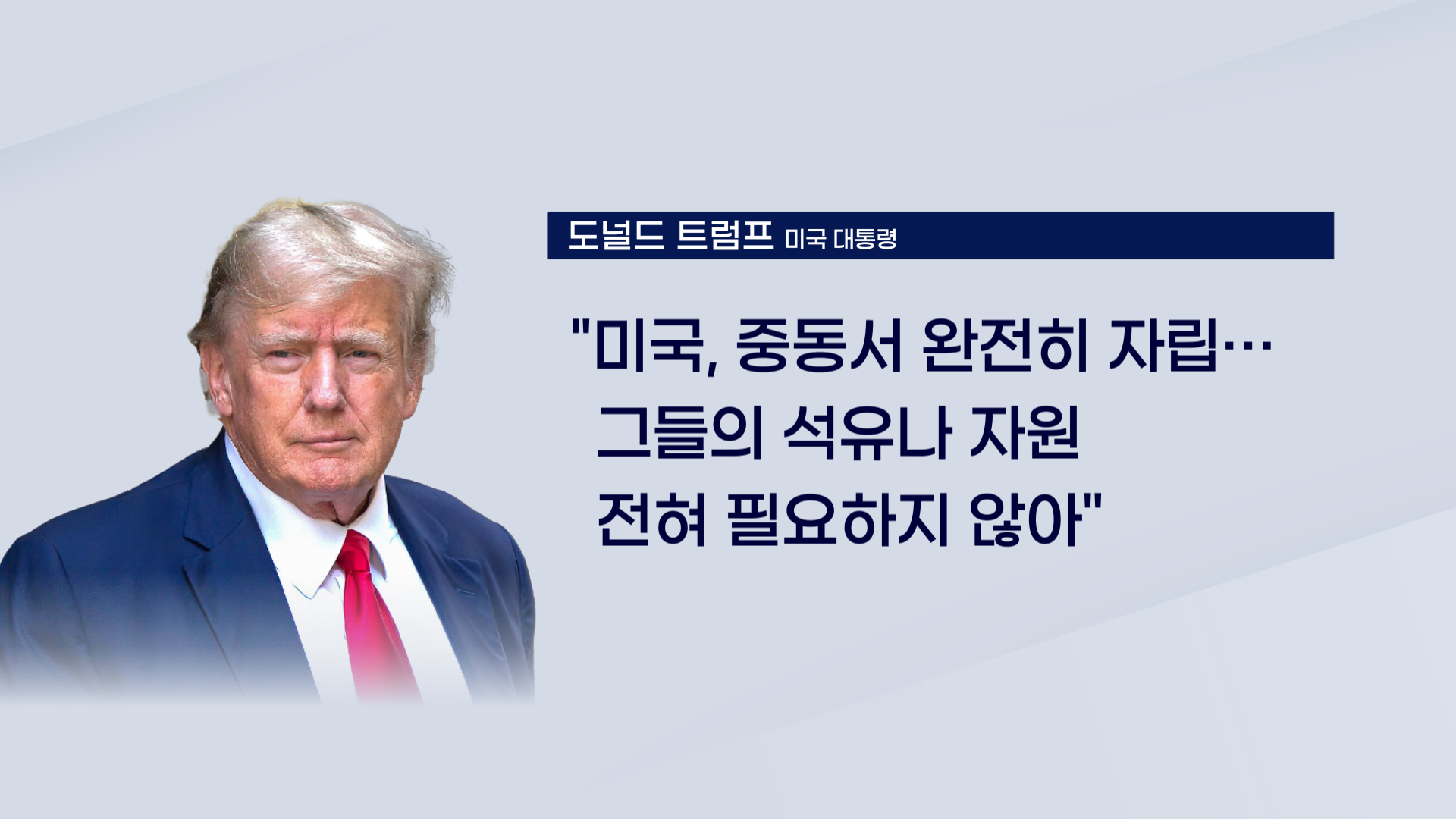 오늘(2일) "미국은 이제 중동에서 완전히 자립했다, 그들의 석유나 자원은 전혀 필요하지 않다", 다른 국가를 향해서도 "미국에서 석유를 사라"는 언급이 나왔습니다.