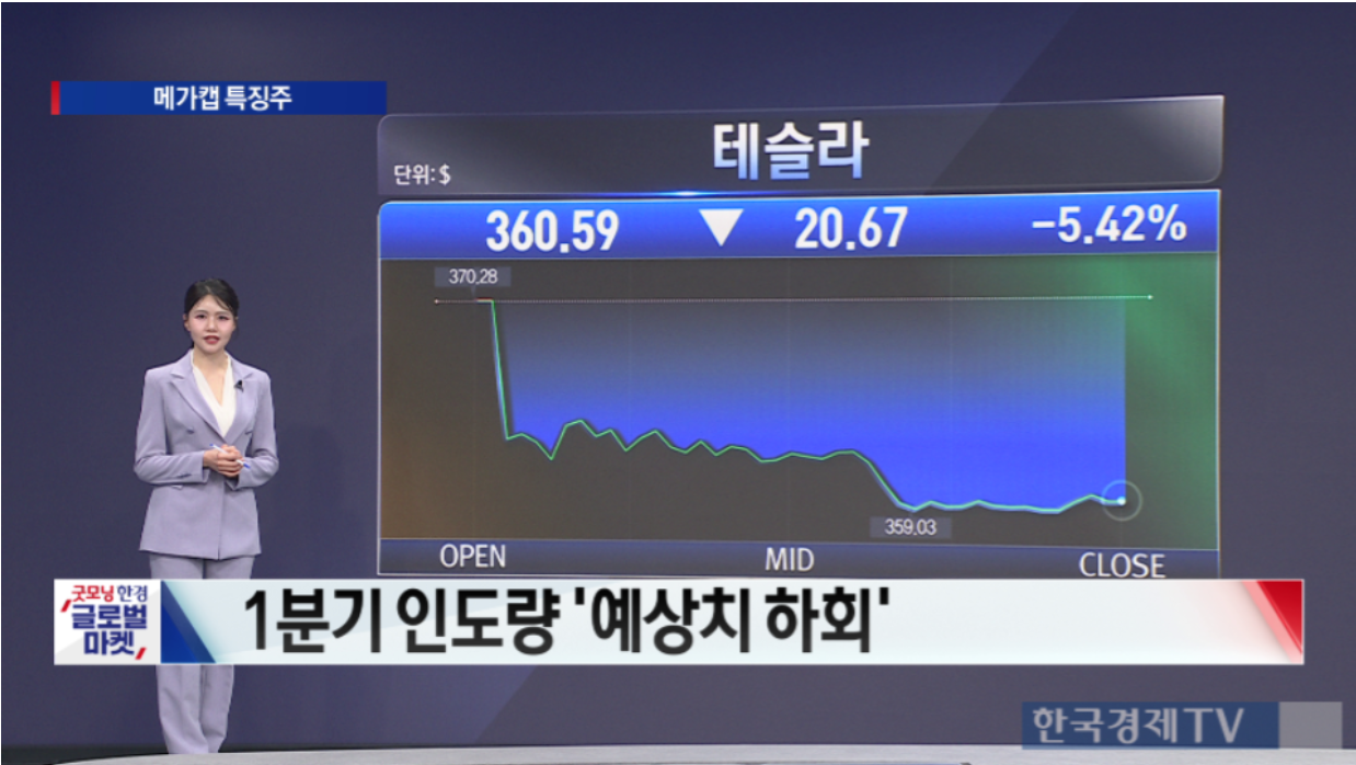 예상보다 저조한 인도량 실적에 결국 이날 테슬라 주가는 5% 넘게 하락했다.