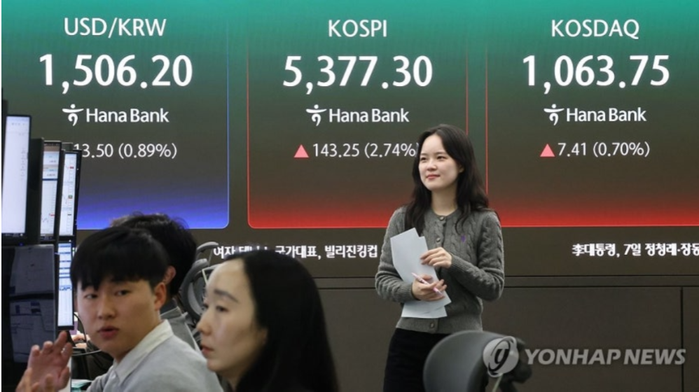 이날 코스피는 전 거래일 대비 143.25포인트(2.74%) 오른 5,377.30에 장을 마쳤다.