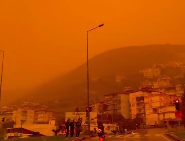아프리카 사하라 사막에서 발생한 모래폭풍이 지중해를 넘어 튀르키예 남부 해안 지역을 덮쳤다.