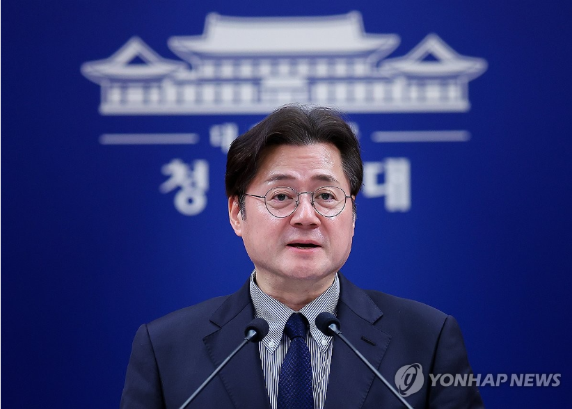 도널드 트럼프 미국 대통령이 한국 등 동맹국에 호르무즈 해협 파병 압박을 이어가는 것에 대해서 홍 수석은 "아직 저희는 매우 신중한 입장"이라며 "미국도 공식적으로 한국의 파병을 요청하지 않았다"고 선을 그었다.