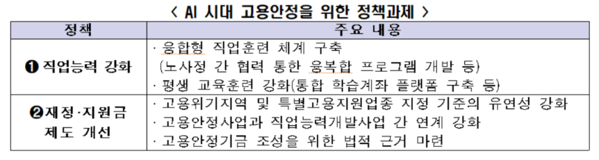 보고서는 AI 전환기에 고용정책 목표를 '일자리 유지'에서 '지속적인 취업 가능성 확보'로 확대해야 한다고 강조했다.