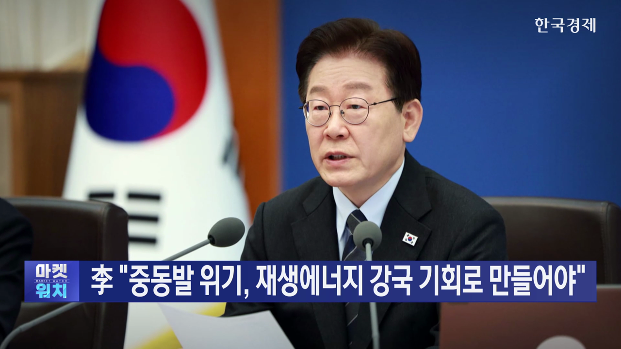 [이재명 / 대통령 : 그리고 화석연료 산업체계를 과감하고 신속하게 전환해야 되겠습니다. IMF외환위기를 IT강국 도약의 계기로 삼았던 것처럼 이번 중동발 위기를 재생에너지 강국으로 나아가는 기회로 만들어야겠습니다.]