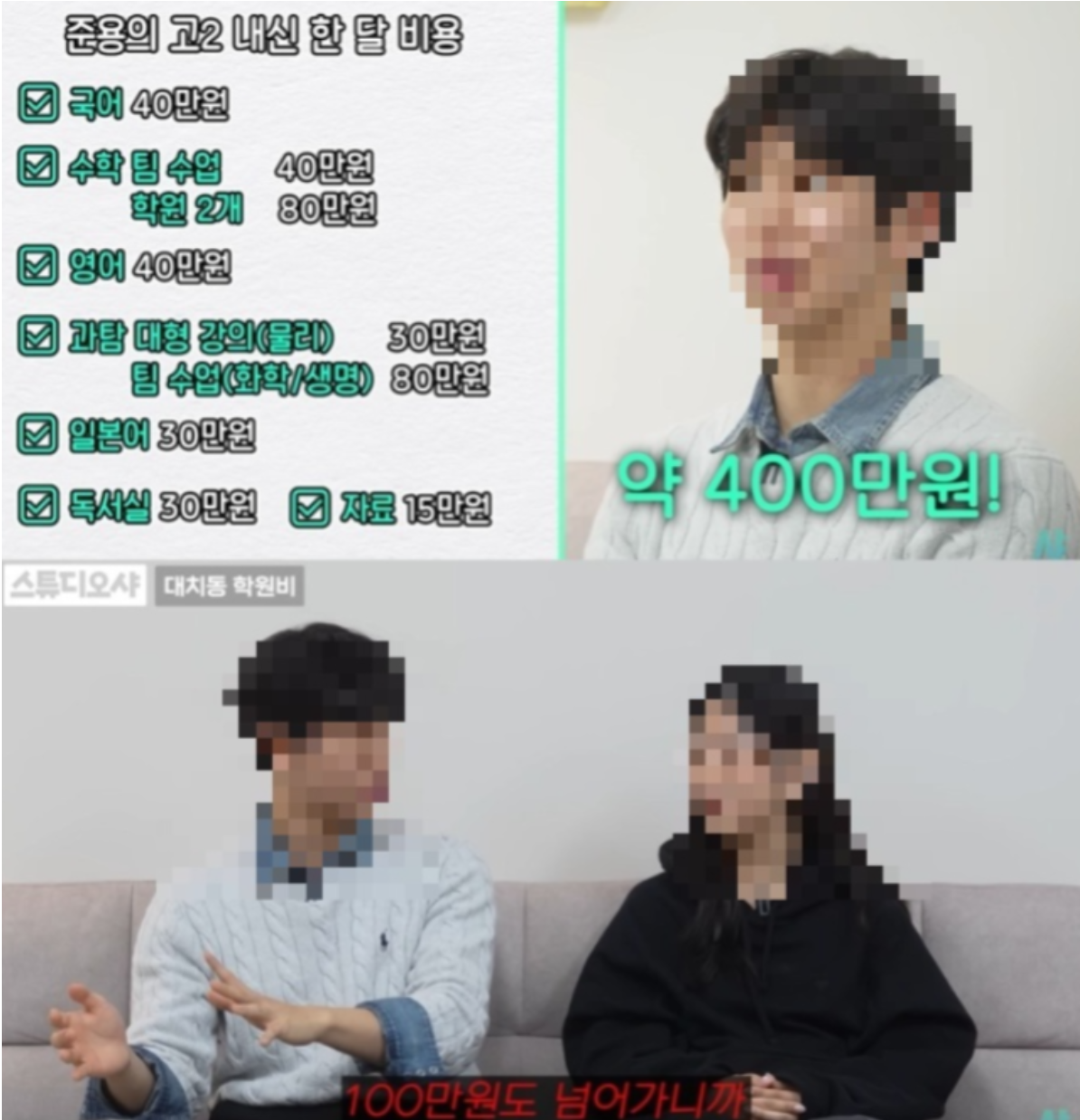 이어 "수능을 2달 정도 앞둔 '파이널 기간'에는 교재비와 인터넷 강의 비용이 늘어나 500만원 이상 들었다"고 덧붙였다.