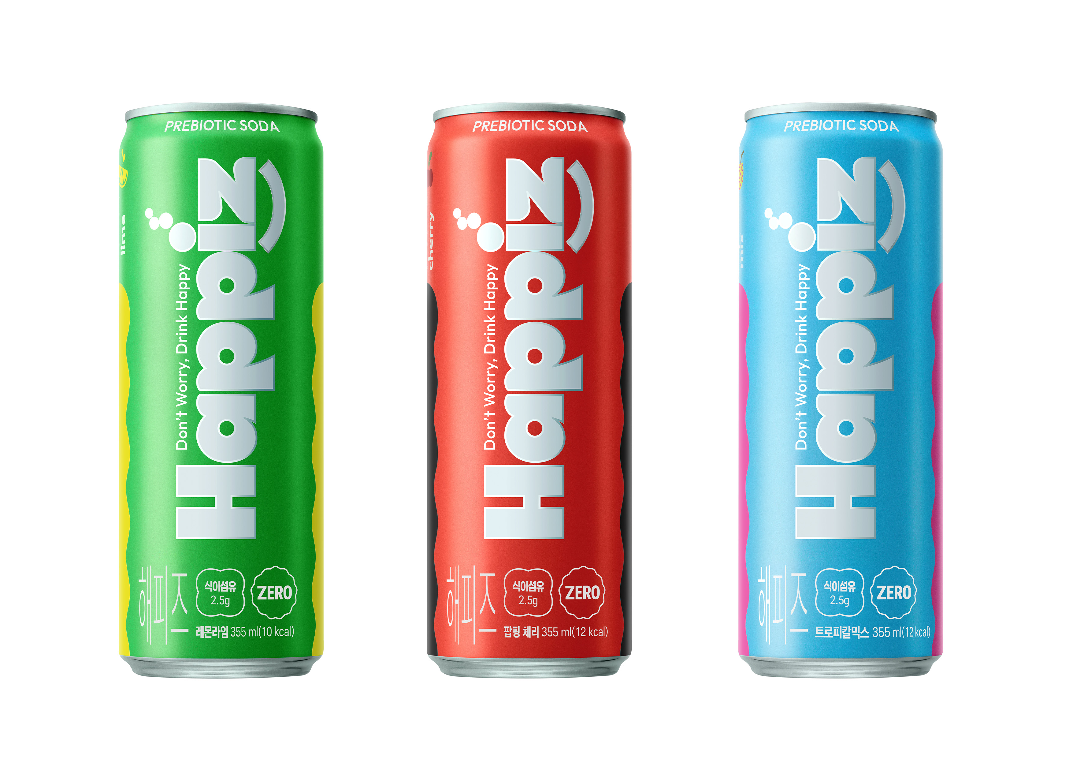 새롭게 선보이는 '해피즈'는 제로 슈거, 제로 칼로리로 당과 칼로리에 대한 부담 없이 가볍게 즐길 수 있으며, 식이섬유 2.5g이 함유된 프리바이오틱 소다이다.