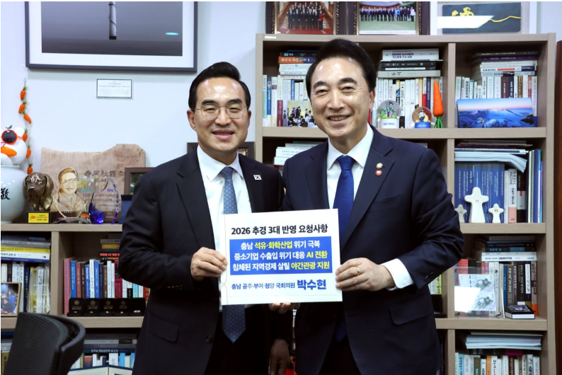 박수현 의원은 "석유화학 위기 극복부터 AI 대전환, 야간경제 활성화까지 이번 추경에 꼭 반영 될 수 있도록 최선을 다 하겠다"고 밝혔다.