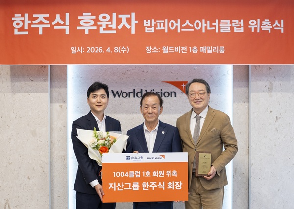 국제구호개발 NGO 월드비전(회장 조명환)은 지난 8일 서울 영등포구에 위치한 월드비전 본부에서 지산그룹 한주식 회장을 ‘밥피어스아너클럽 200호 및 천사클럽 1호’로 위촉했다고 9일 밝혔다.
