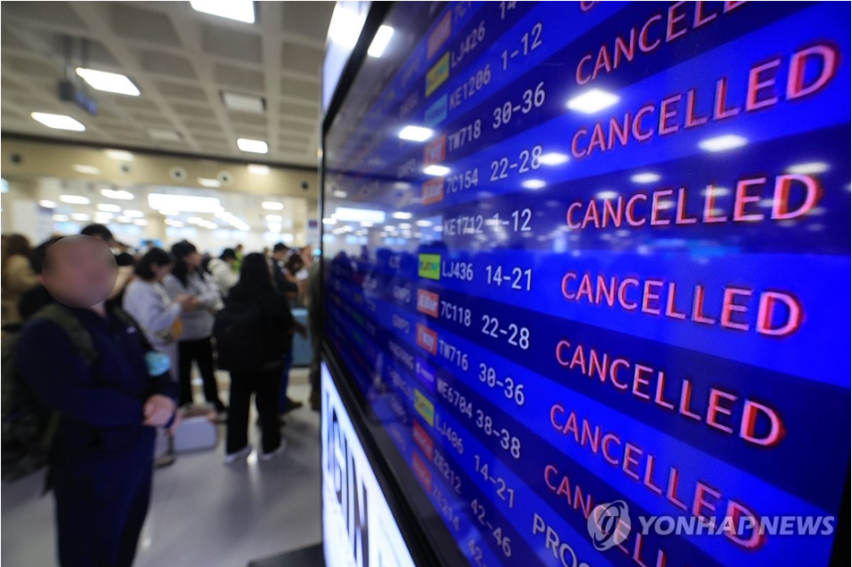 제주공항은 체류객 지원 '주의' 단계를 발효했다. '주의'는 제주 출발 결항편 승객이 3,000명 이상일 때 내려지는 단계다.