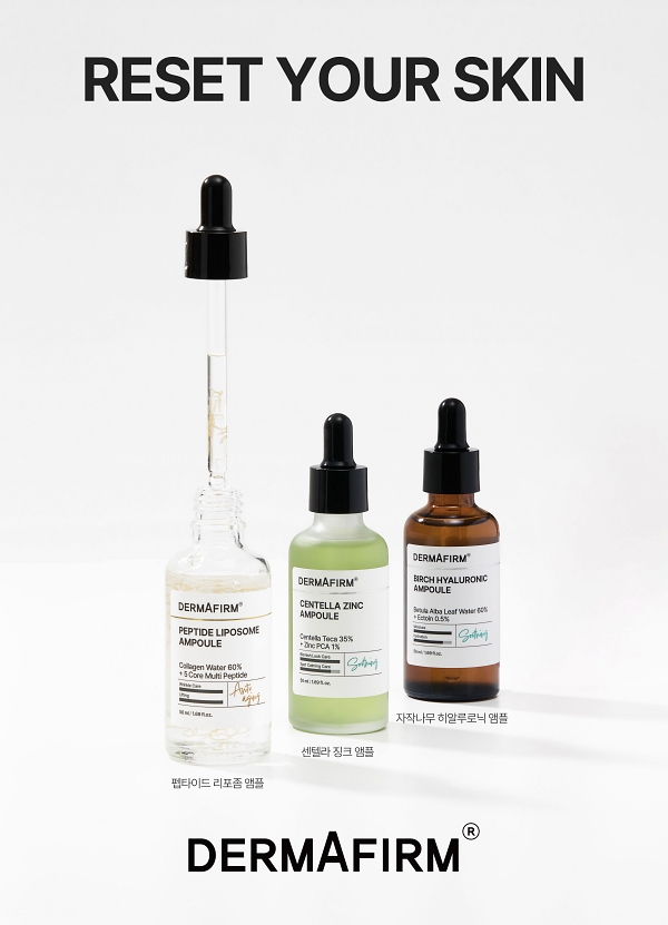 신제품은 ▲센텔라 징크 앰플 ▲펩타이드 리포좀 앰플 ▲자작나무 히알루로닉 앰플 등 총 3종으로 구성되며, ‘RESET YOUR SKIN’ 이라는 소비자의 피부 고민별 맞춤 솔루션 제공을 핵심 콘셉트로 기획됐다. 3종 모두 민감성 피부 대상 일차 자극 테스트를 완료해 예민한 피부 타입에서도 안심하고 사용할 수 있다고 전했다.