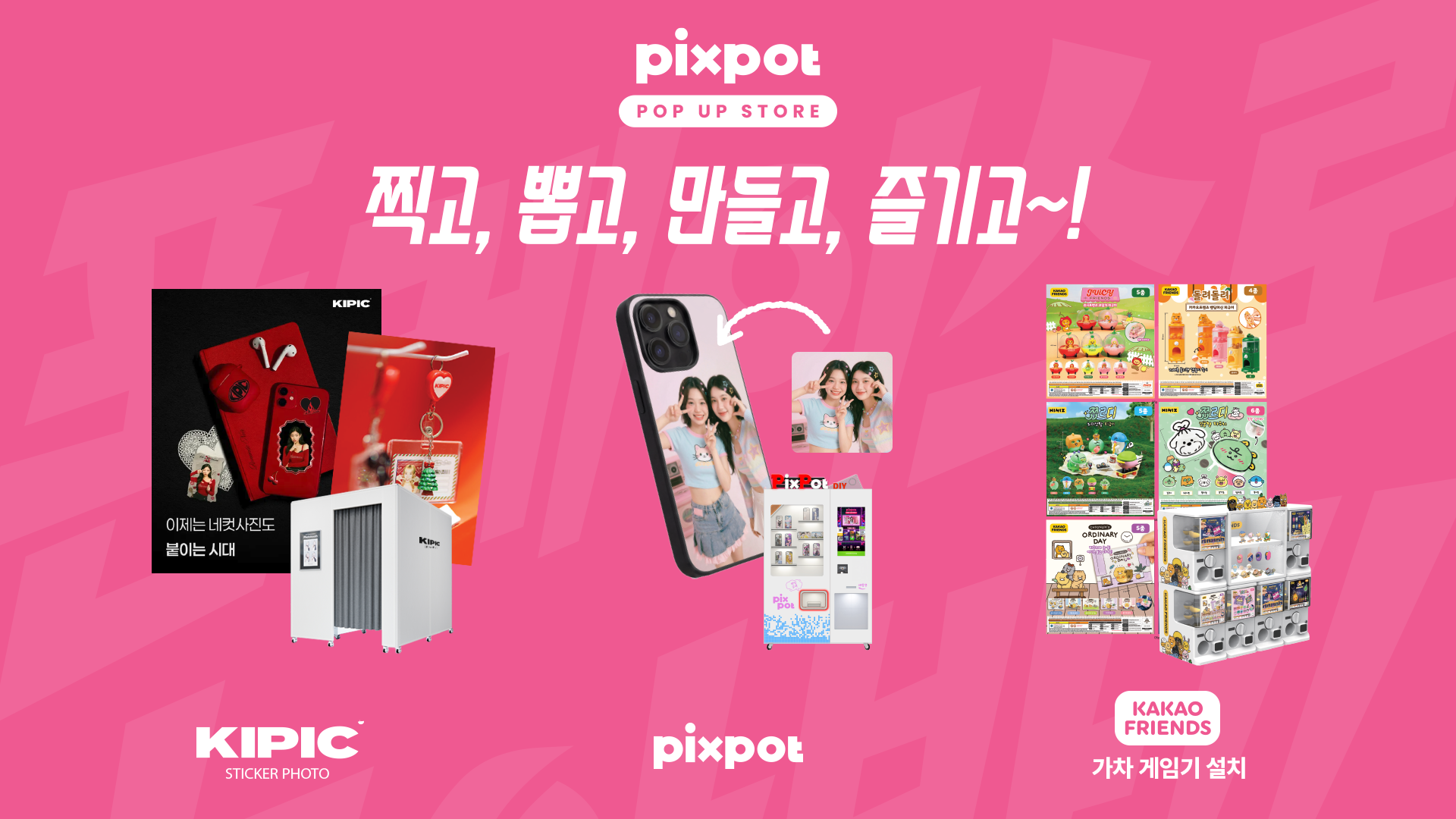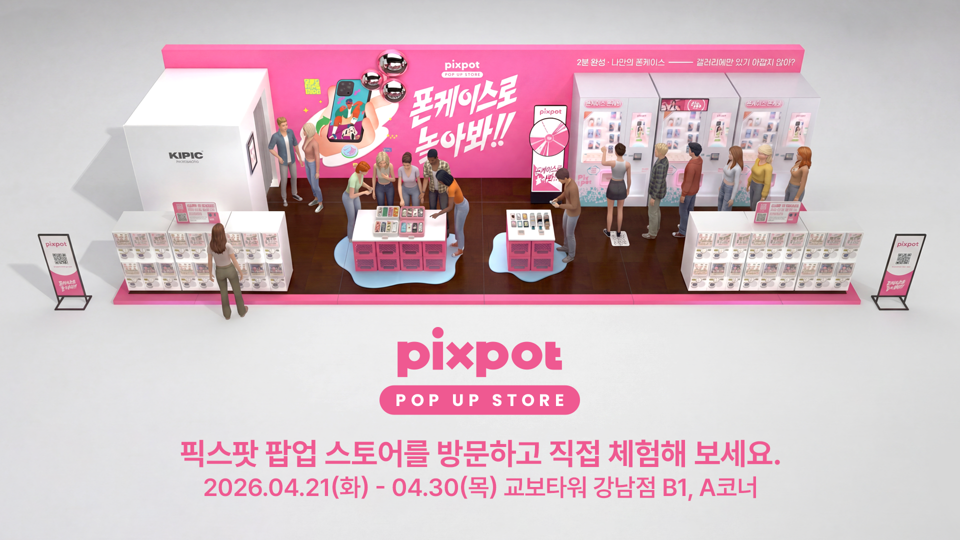 현장에는 커스텀 폰케이스 제작 서비스 픽스팟을 비롯해 포토부스 브랜드 KIPIC, 리튬포어스의 카카오 캐릭터 기반 가챠 콘텐츠가 함께 참여한다. 방문객들은 촬영, 제작, 참여형 콘텐츠를 순차적으로 즐기며 자연스럽게 하나의 체험 흐름을 완성할 수 있다.