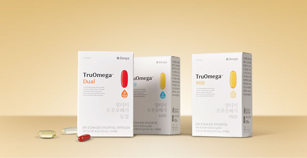 핵심 제품인 ‘트루오메가 900’은 고순도·고함량을 강조한 제품으로, 순도 80% 원료를 기반으로 1캡슐당 900mg의 오메가3를 담았다.