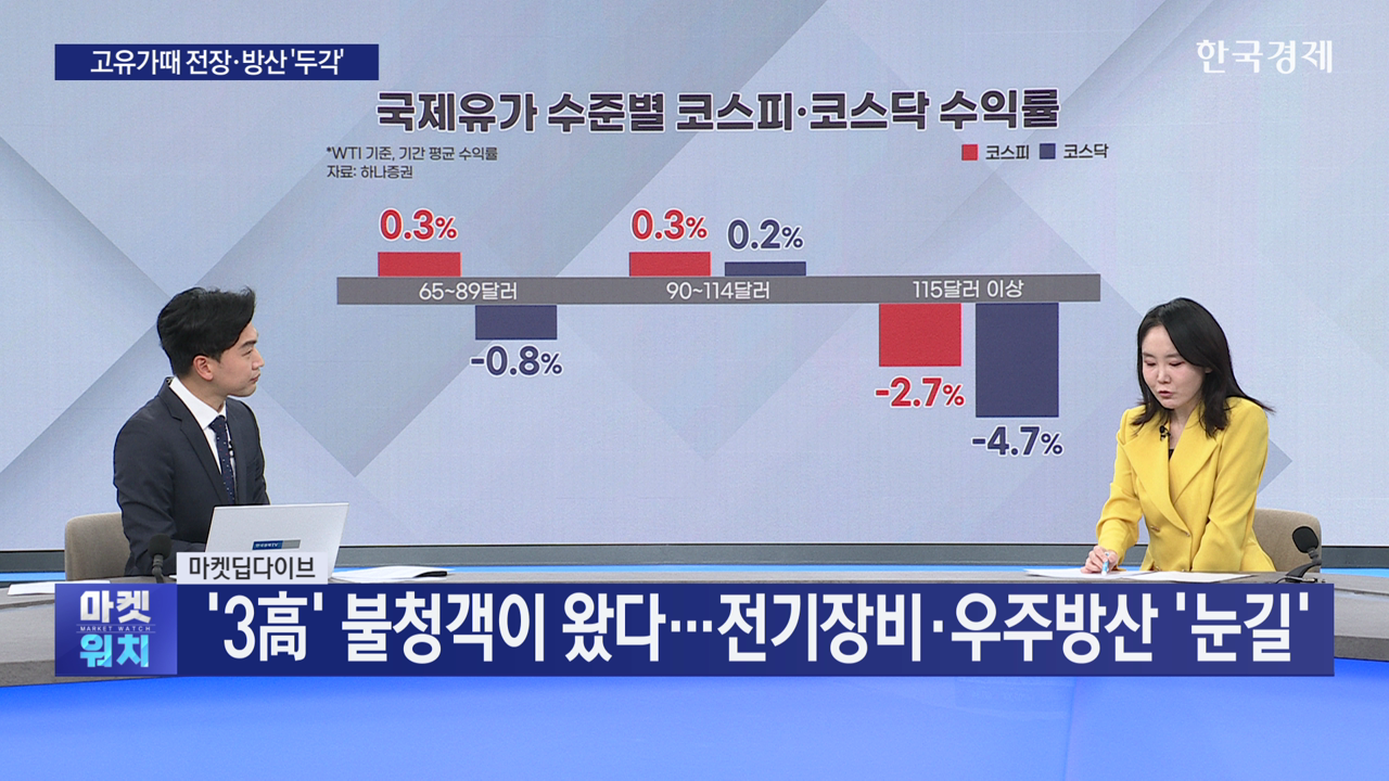 유가가 배럴 당 84달러에서 121달러 구간일 때 전기장비, 방산·우주, 통신서비스, 상사, 지주 등의 업종 연간 수익률이 같은 기간 코스피 수익률을 넘어선 것으로 집계됐습니다.