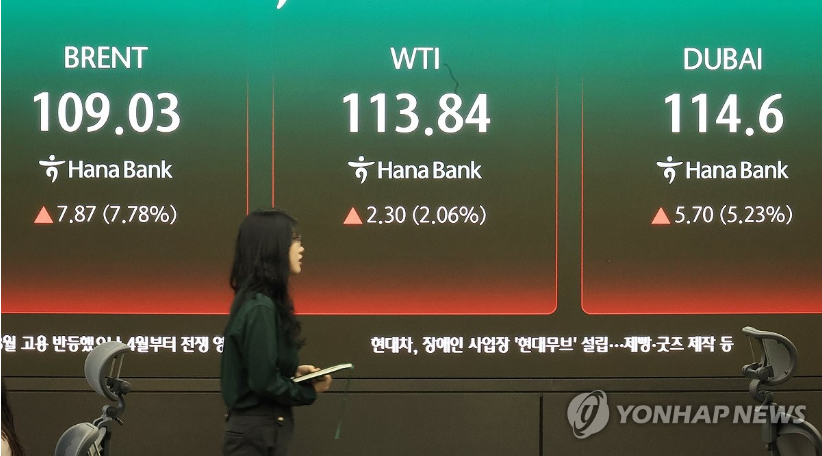 두바이 유가(월평균·배럴당)는 2월 68.40달러에서 87.9% 뛰어 3월 128.52달러가 됐다. 원/달러 환율(월평균) 역시 한 달 사이 1,449.32원에서 1,486.64원으로 2.6% 올랐다.