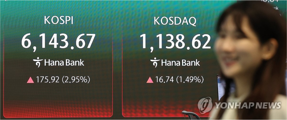 코스피가 15일 장 초반 큰 폭으로 상승하며 6,100선을 넘어섰다. 이에 따라 시가총액도 5천조원을 다시 돌파했다.