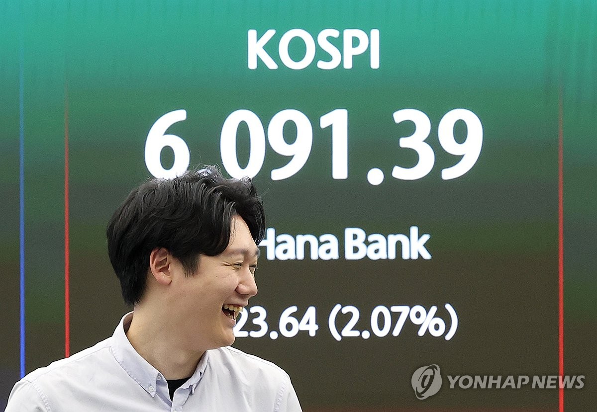 코스피가 종가 기준 6,000선을 넘어선 건 미국과 이란 간 전쟁 발발 직전 거래일인 지난 2월 27일(6,244.13) 이후 처음이다.