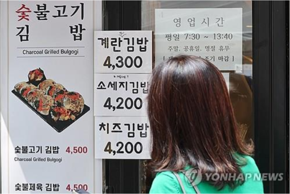 반면 1만원 이하를 유지한 메뉴는 김치찌개백반 8,654원, 자장면 7,692원, 김밥 3,800원 정도에 그쳤다.