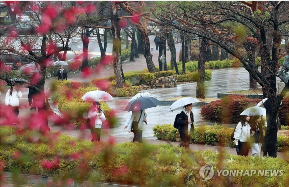 제주와 전남해안에는 새벽부터, 남부지방은 오전부터, 충청은 낮부터 비가 오겠다.