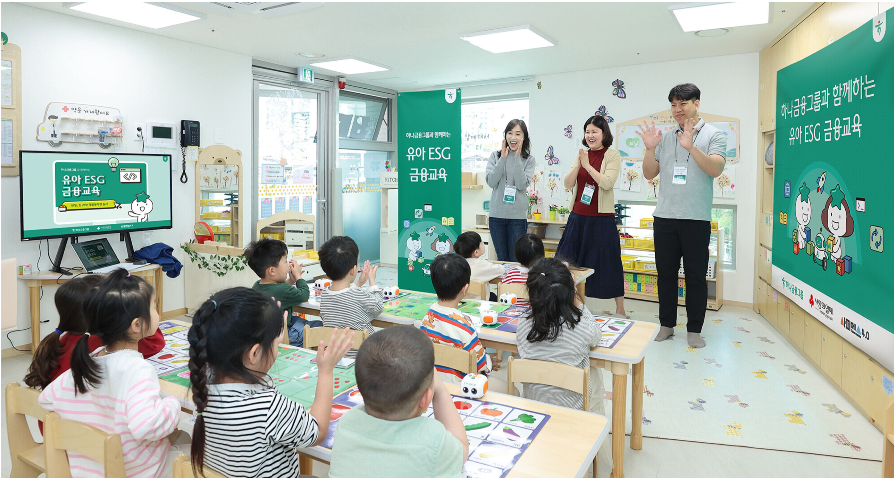 한편, 하나금융그룹은 어린이를 비롯한 전 세대를 대상으로 맞춤형 금융교육을 진행하고 있다. 초등학생 대상 ‘하나 둘 셋 금융아 놀자!’, 청소년 대상 ‘1사1교 금융교실’, 시니어 대상 ‘찾아가는 시니어 디지털 금융교육’ 등 생애주기별 프로그램을 통해 진정성 있는 ESG 가치 전파에 앞장서고 있다.
