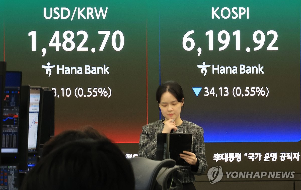 17일 코스피지수는 전 거래일보다 34.13포인트(0.55%) 떨어진 6,191.92에 장을 마쳤다.