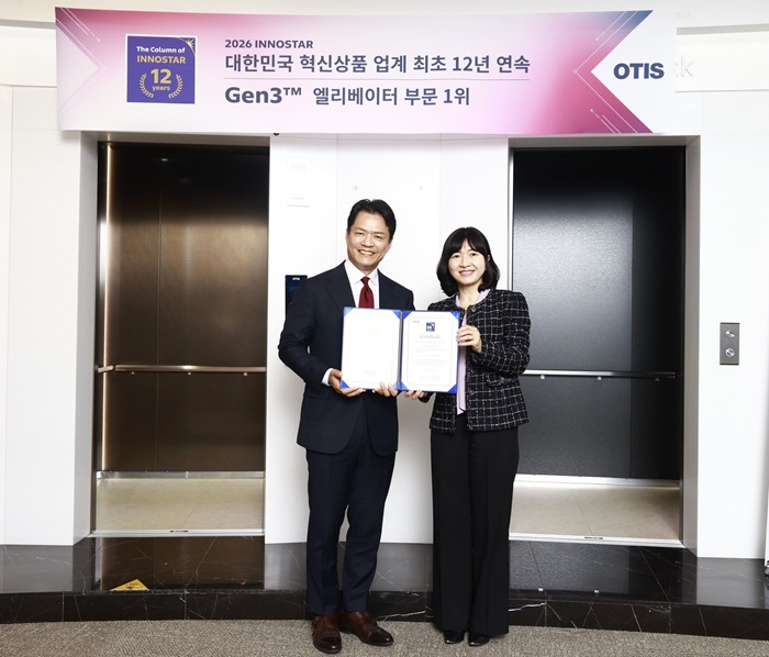 한국경영인증원(KMR)이 매년 발표하는 이노스타 인증은 전문 조사기관인 한국리서치의 전문적이고 객관적인 소비자 조사를 바탕으로 시장을 선도하는 혁신 상품과 서비스를 선정하는 제도다. 엘리베이터 부문에서는 오티스의 젠쓰리(Gen3™)가 혁신지수 1위 제품으로 선정됐다.