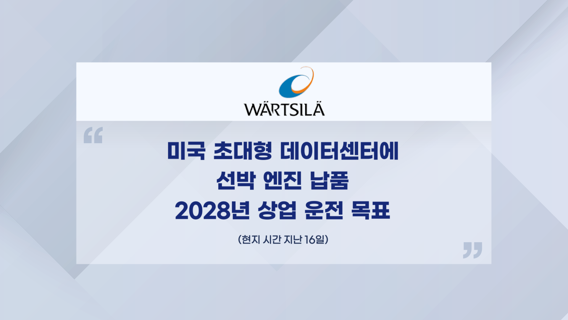 바르질라는 현지 시간 지난 16일 미국 오하이오주 하이퍼스케일 데이터센터에 412MW(메가와트) 전력 공급용 엔진을 납품하기로 했다고 밝혔습니다.