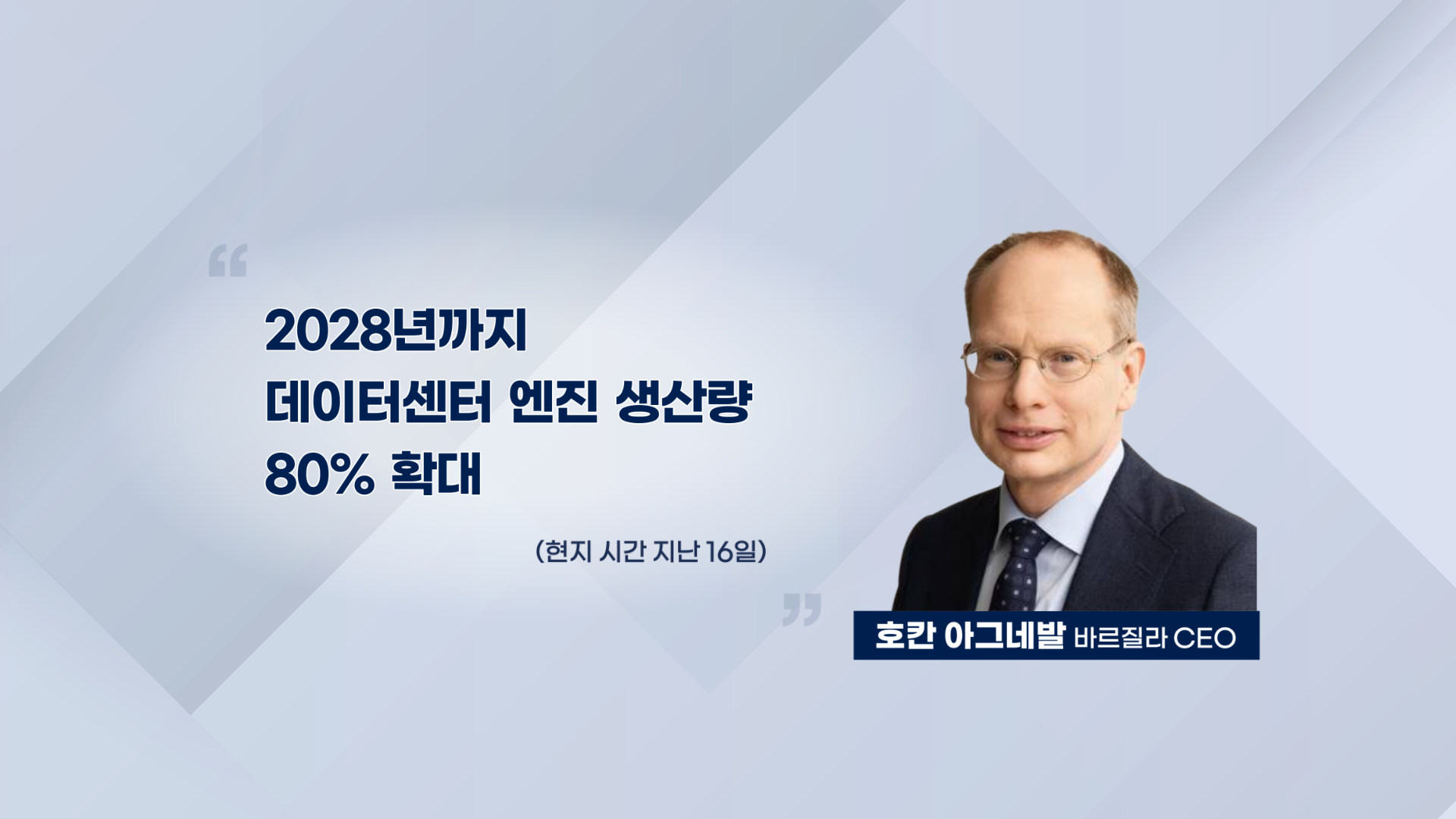 호칸 아그네발 바르질라 CEO는 2028년까지 데이터센터 엔진 생산량을 80% 확대하겠다고 발표했습니다.
