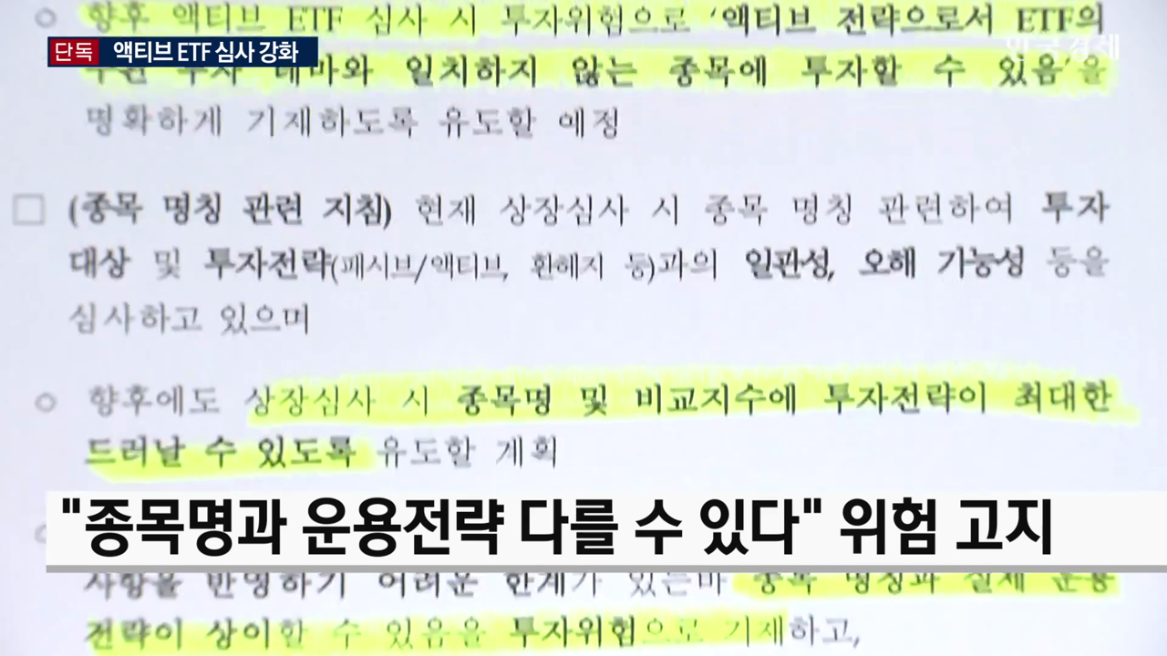 투자자 혼란이 커지자 한국거래소가 액티브 ETF 상장 심사를 한층 강화하기로 했습니다. 전효성 기자입니다.