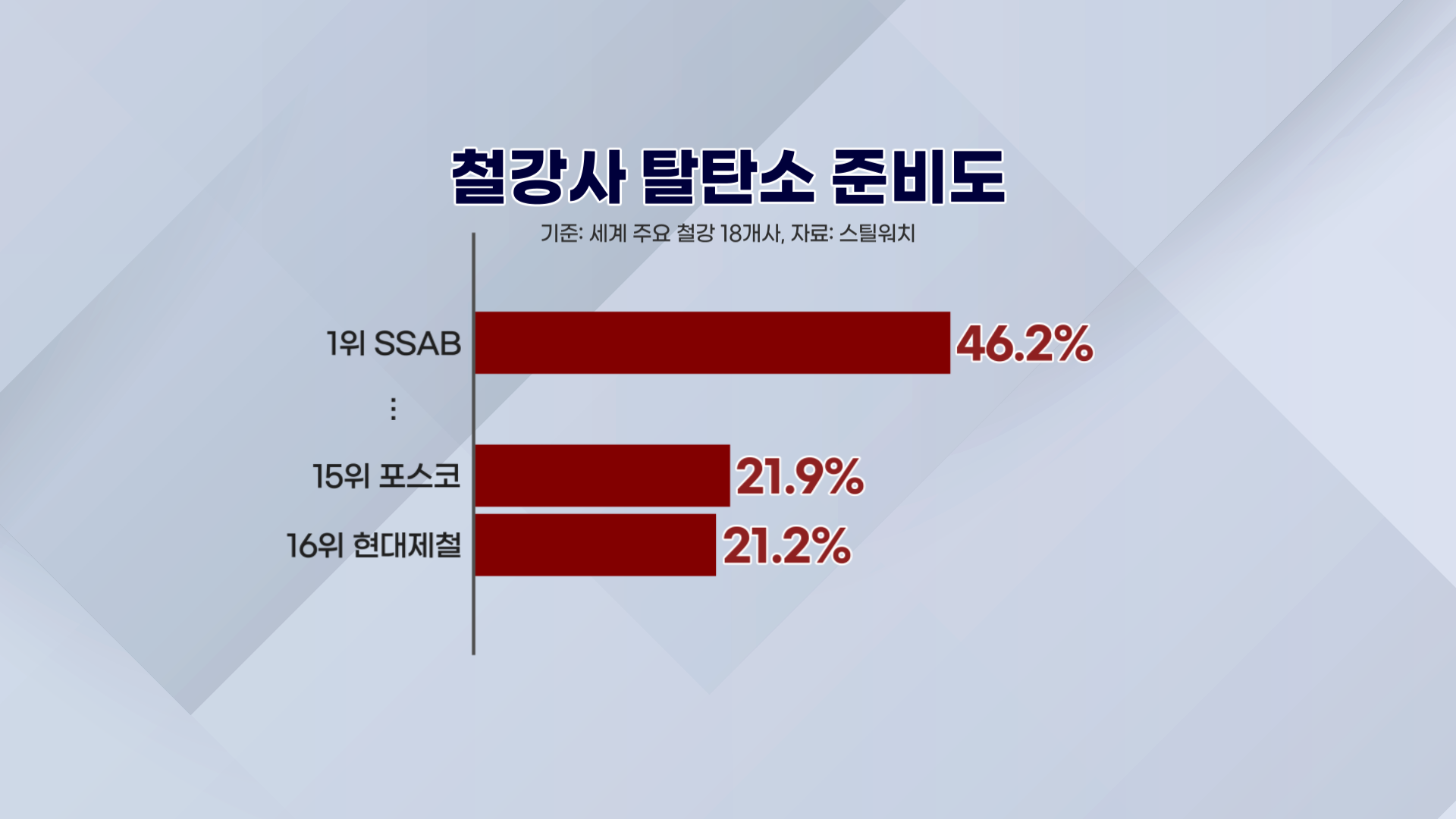 국제환경단체 스틸워치에 따르면 글로벌 주요 철강사 가운데 '탄소 배출이 거의 없는' 생산 체제로 전환이 준비된 곳은 한 곳도 없는 것으로 나타났는데요.
