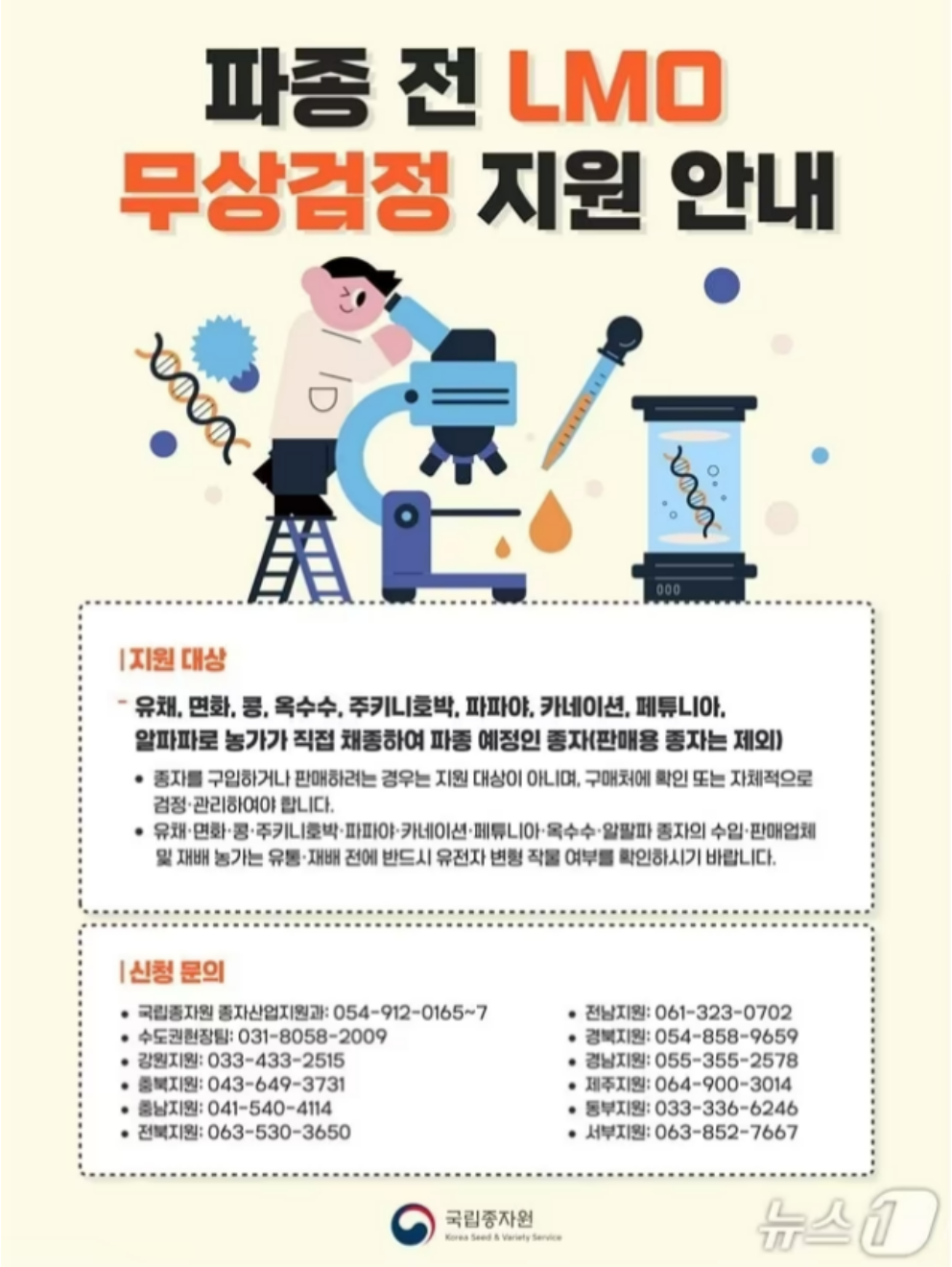 이남윤 국립종자원종자산업지원과장은 "종자용 LMO가 국내 수입 승인된 적은 없지만 유전자변형 관리작물의 유통·판매 종자와 재배지를 대상으로 지속적으로 모니터링을 실시하고 있다"며 "무상검정은 종자용으로 유통·판매되지 않는 자가소비 형태의 종자도 파종 전 검정을 통해 비의도적인 LMO 재배를 사전 예방하는 것이 목적"이라고 말했다.